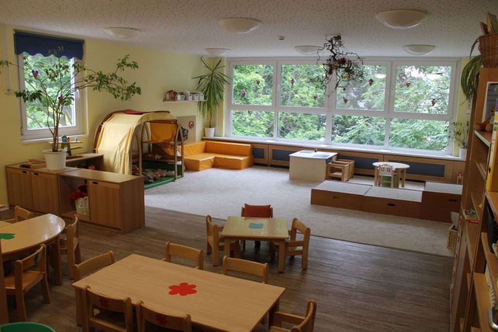 - Gruppenräume ausgestattet mit Puppenecke, Kuschelecke, Bauecke, Büchern, Mal- und Gestaltungsmaterial, Musikinstrumenten